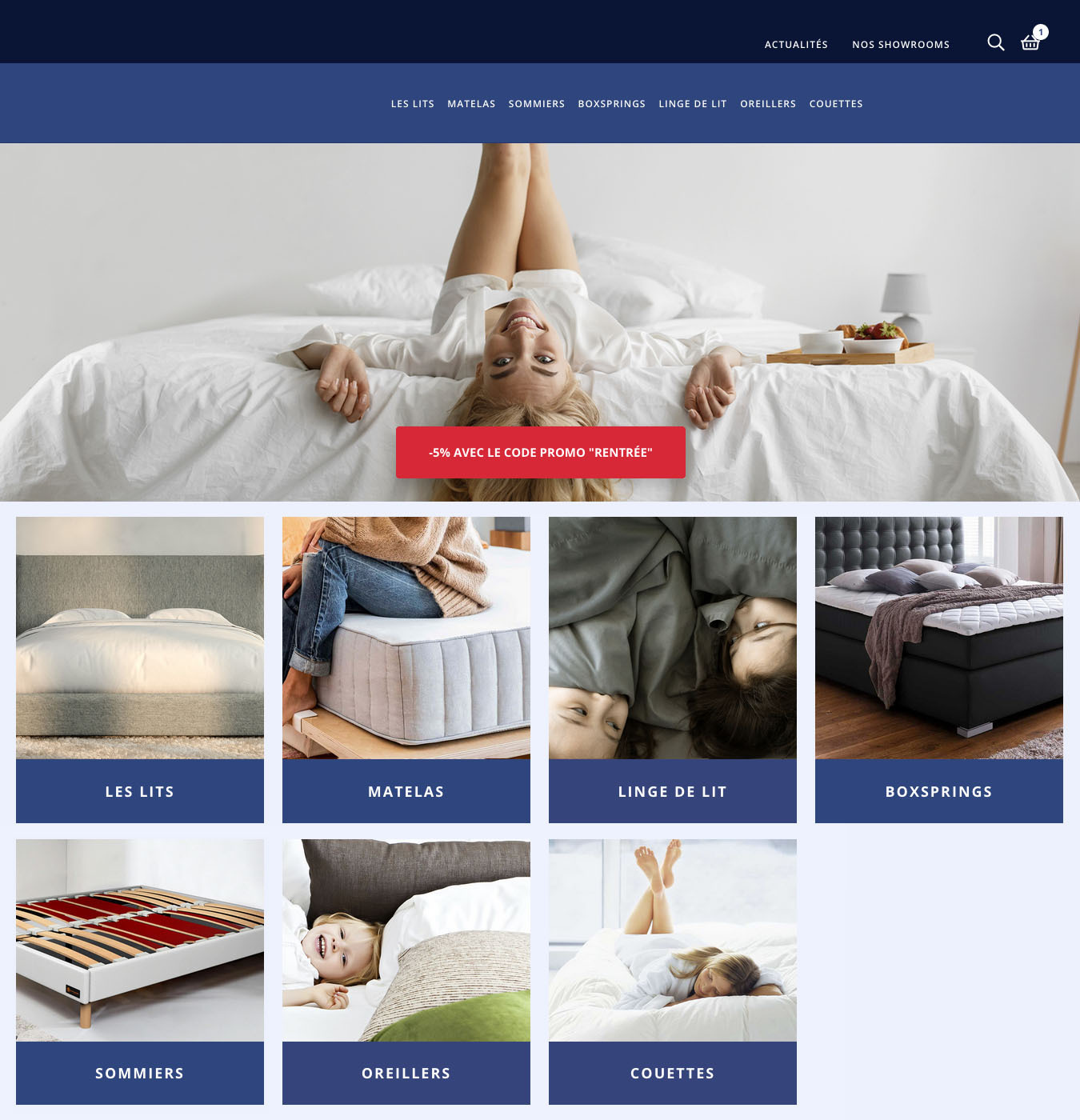 Following the discovery of our portfolio, the former Director Literie Prestige, Bernard Englebert, contacted us in 2019 to create the brand's website. The first step was to present the brand, to be able to communicate promotions and discounts to the public, as well as to inform about the existence of about fifteen showrooms across the country.
